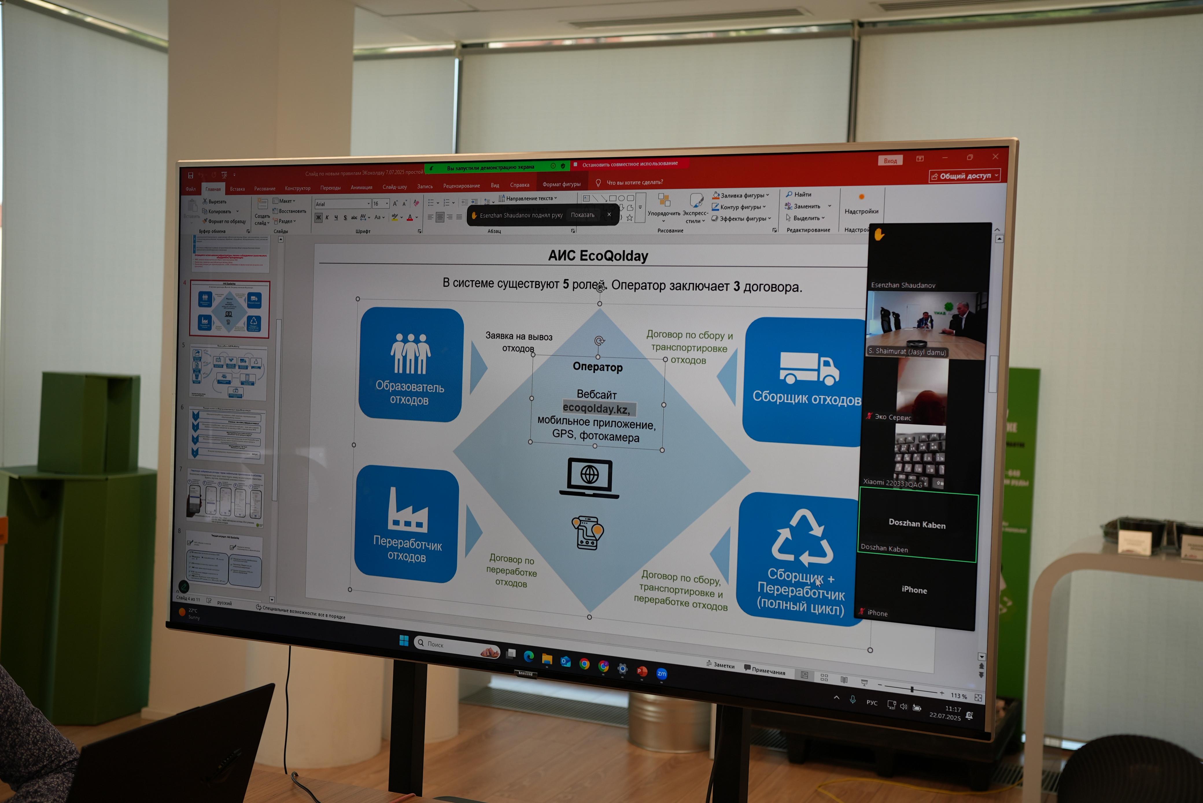 22 июля 2025 года АО «Жасыл даму» провело онлайн-встречу с представителями мусоровывозящих организаций из Актюбинской, Атырауской, Западно-Казахстанской и Мангистауской областей.