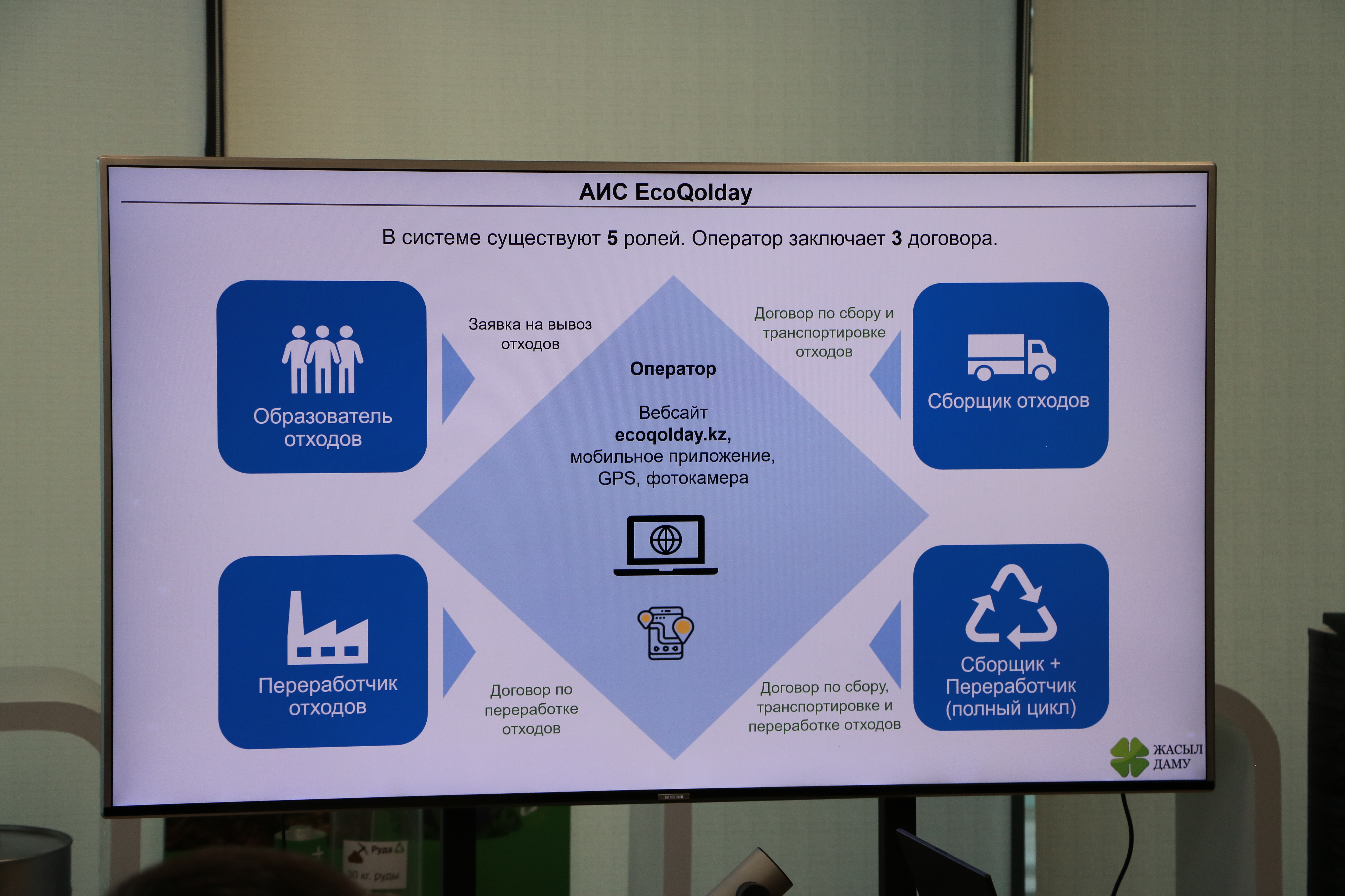 Для справки: АИС «EcoQolday» - цифровая платформа по поддержке сбора, сортировки и переработки отходов. Пользователи могут отслеживать сдачу вторсырья, получать денежные выплаты, участвовать в экопрограммах и конкурсах. Система направлена на вовлечение как физических, так и юридических лиц в процесс создания «зеленой экономики».