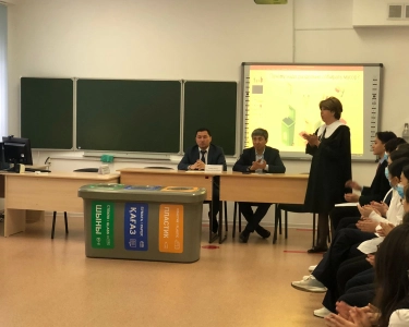 В рамках пилотного проекта в здании школы-гимназии №17, Назарбаев Интеллектуальной школы и Республиканской физико-математической школы, были установлены специальные контейнеры. Специалисты департамента по управлению отходами АО «Жасыл даму» разъяснили школьникам важность сортировки бытовых отходов.