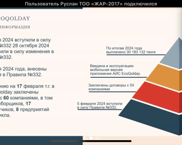 18 февраля 2025 года Министерство экологии и природных ресурсов Республики Казахстан совместно с АО «Жасыл даму» провело онлайн-совещание с участием более 60 субъектов предпринимательства, осуществляющих сбор, транспортировку и переработку отходов, по разъяснению предлагаемых поправок в Правила направления денег оператором расширенных обязательств производителей (импортеров) поступивших на его банковский счет от производителей и импортеров на организацию сбора, транспортировки, подготовки к повторному использованию, сортировки, обработки, переработки, обезвреживания и (или) утилизации отходов, образующихся после утраты потребительских свойств продукции (товаров), на которую (которые) распространяются расширенные обязательства производителей (импортеров) путем выплат, утвержденные приказом Министра экологии и природных ресурсов Республики Казахстан от 27 ноября 2023 года № 332 (далее – Правила «EcoQolday»).