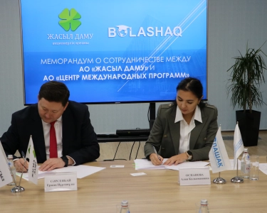 31 октября 2023 года Председатель Правления АО «Жасыл даму» Ержан Сәрсенбай и и.о. председателя Правления АО «Центр международных программ» Алия Оспанова подписали Меморандум о сотрудничестве.