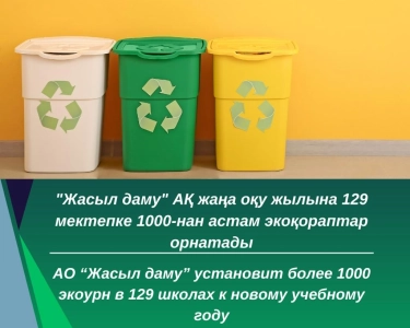 АО «Жасыл даму» продолжает экологическое просвещение молодежи: в 129-ти государственных школах Астаны и Жезказгана в течение лета установят 1095 комплектов современных эко урн, предназначенных для раздельного сбора отходов.