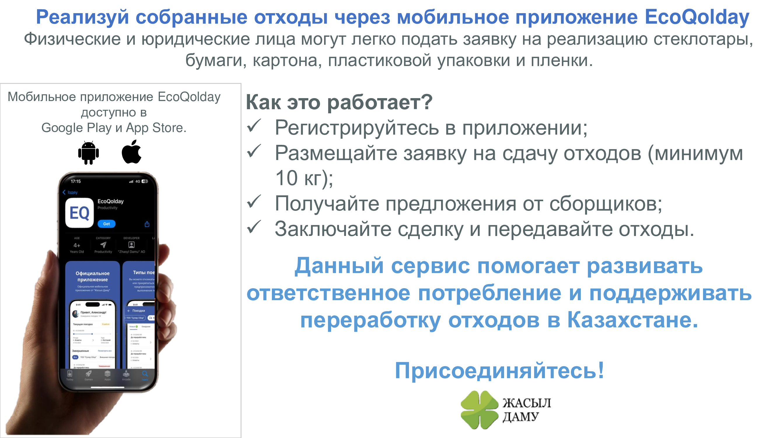 Реализуй собранные отходы через мобильное приложение EcoQolday