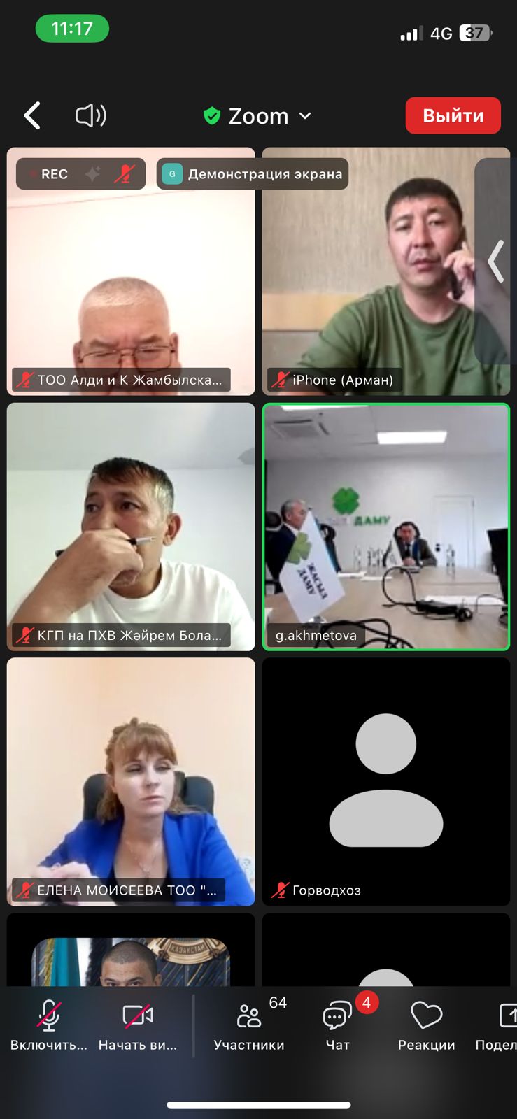 23 мая 2025 года АО «Жасыл даму» провело онлайн-совещание по разъяснению предлагаемых поправок в Правила направления денег оператором расширенных обязательств производителей (импортеров) поступивших на его банковский счет от производителей и импортеров на организацию сбора, транспортировки, подготовки к повторному использованию, сортировки, обработки, переработки, обезвреживания и (или) утилизации отходов, образующихся после утраты потребительских свойств продукции (товаров), на которую (которые) распространяются расширенные обязательства производителей (импортеров) путем выплат, утвержденные приказом Министра экологии и природных ресурсов Республики Казахстан от 27 ноября 2023 года № 332 (далее – Правила «EcoQolday»),в котором приняли участие более 45 субъектов предпринимательства, осуществляющих сбор, транспортировку и переработку отходов.