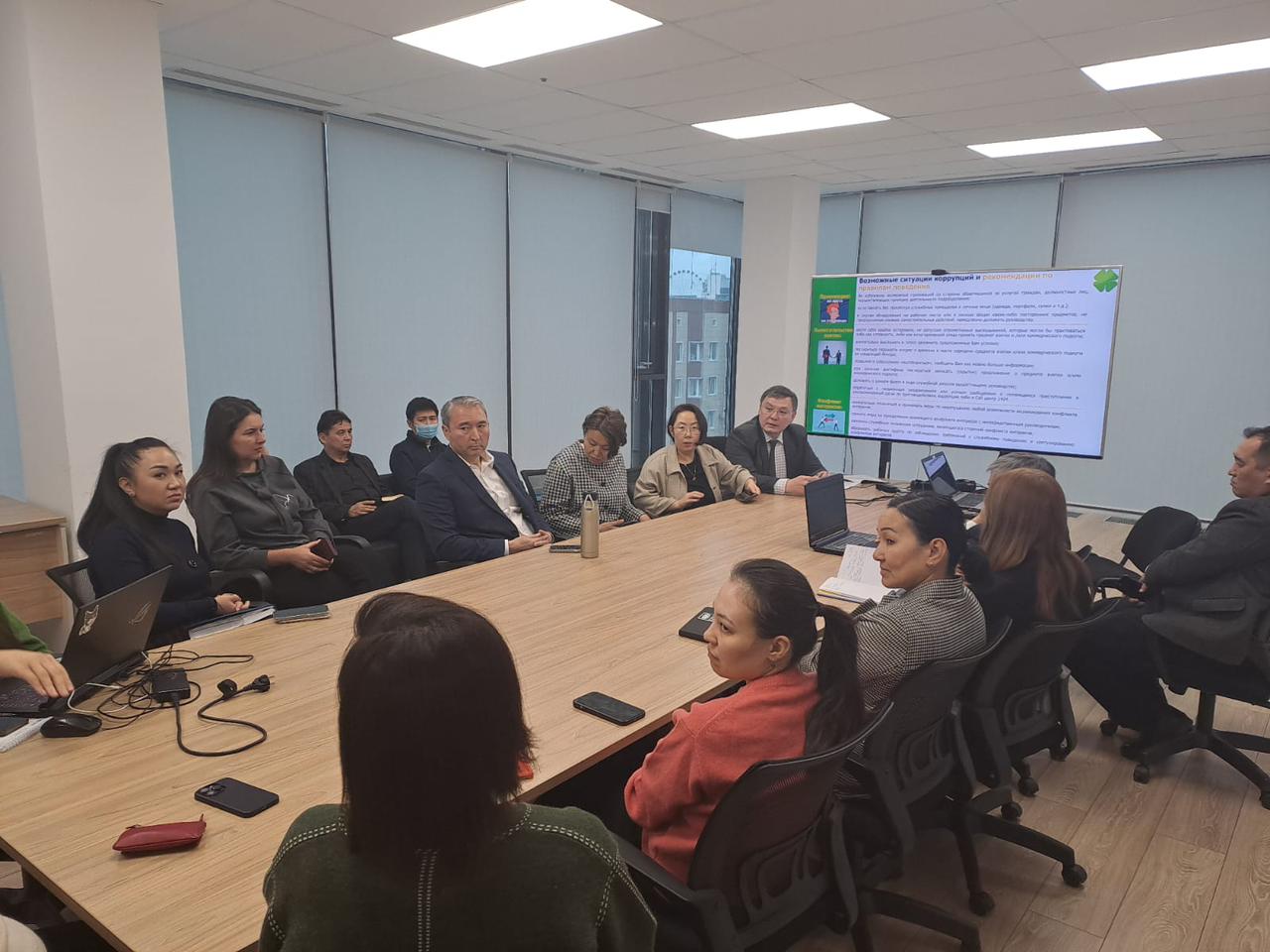 30 ноября 2023 года Службой комплаенс АО «Жасыл даму» было проведено внутреннее обучение для Руководителей структурных подразделений АО «Жасыл даму» на тему: «Инструкции по противодействию коррупции для работников» и «Политики по противодействию мошенничеству».